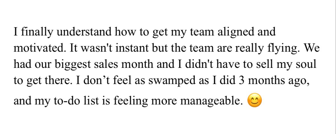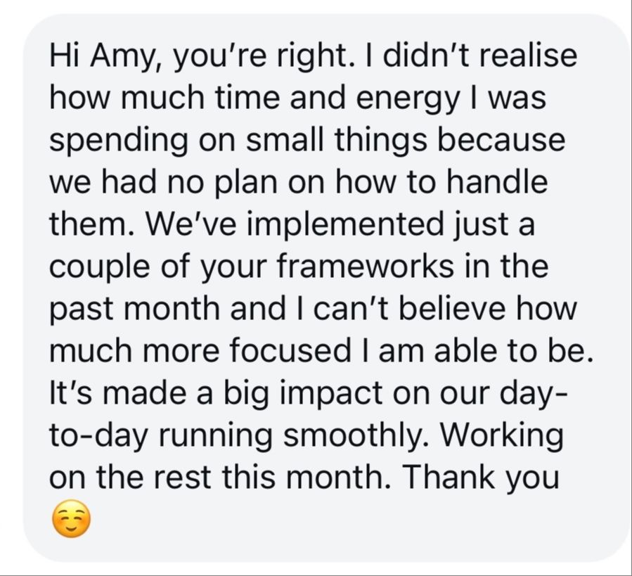 So instead of chasing updates and work to be completed, repeating yourself, or doing it yourself âjust to get it doneâ you get to lead a business that moves forward without you in the middle of everything.
